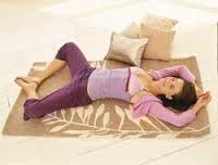 While lying on your back, put together the soles of your feet. Hold out your arms at a 45-degree angle at your sides. Breathe deeply then let your knees fall to the floor while stretching the groin muscles and relaxing the body. Lie for three to five minutes as long as you are comfortable in this position.
